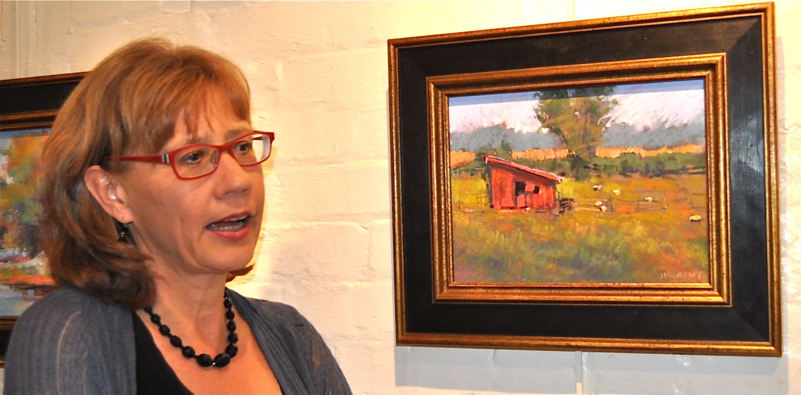 Fall is here and so are the vibrant colors of nature. JoEllen Murphy’s pastels evoke the beauty of the time of year: many shades of red. Browns and yellows too. An award winning artist, JoEllen’s talent is shown in varying shades of color that blend or separate when and where necessary, within the confines of the area she has set for herself.